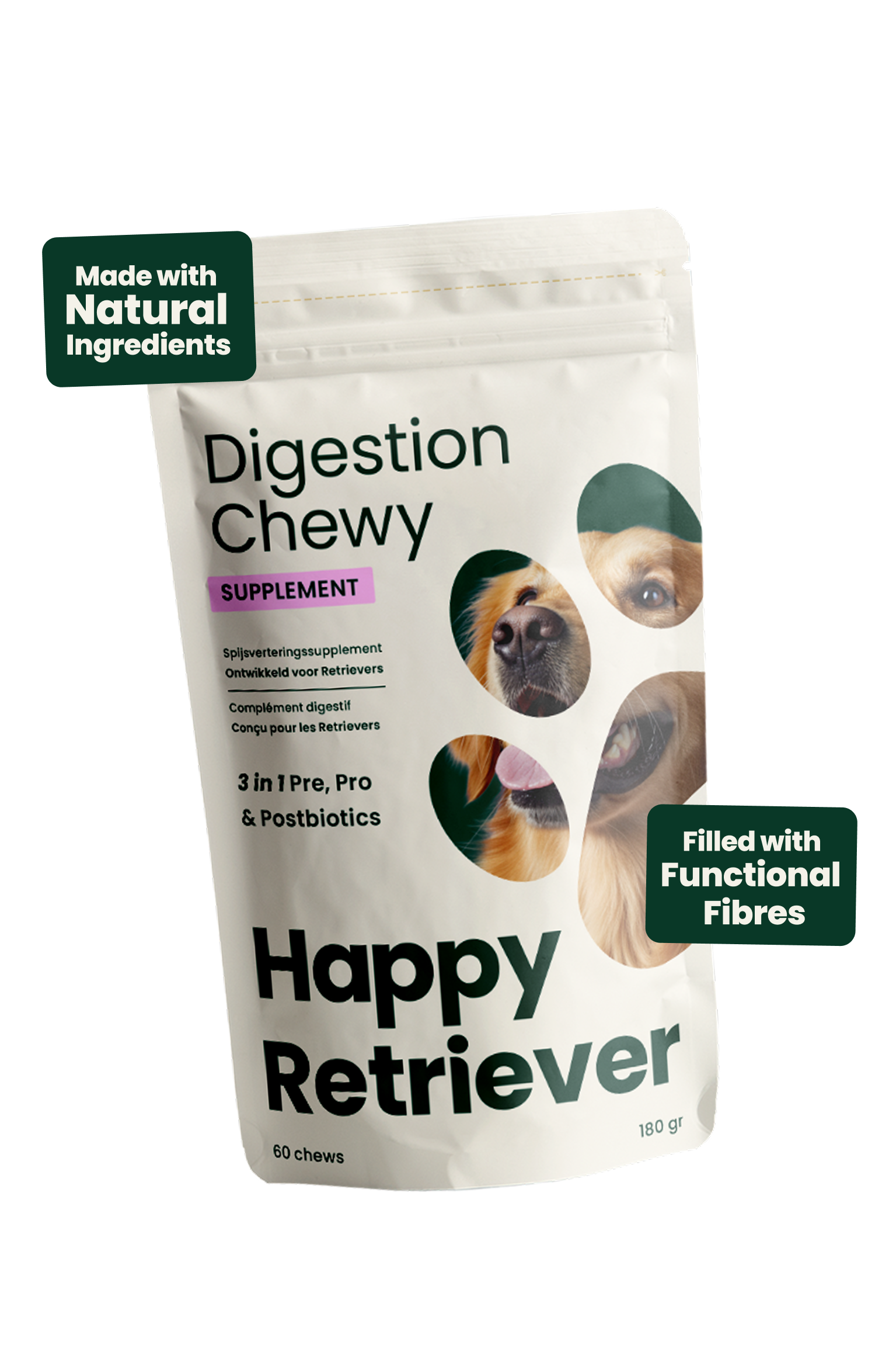 Nous savons qu’il peut être difficile de trouver les bons compléments. Parce que votre Retriever mérite bien plus qu'une nutrition ordinaire, nous avons conçu des formules afin que le bien être de votre fidèle compagnon ne soit plus une source d'incertitude.